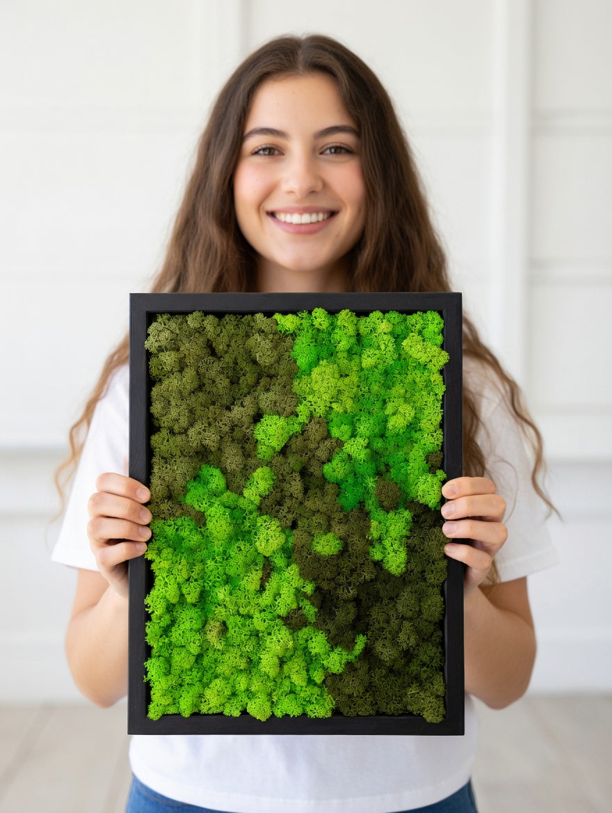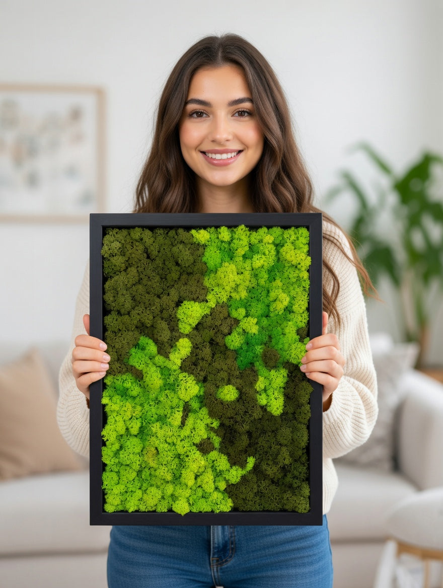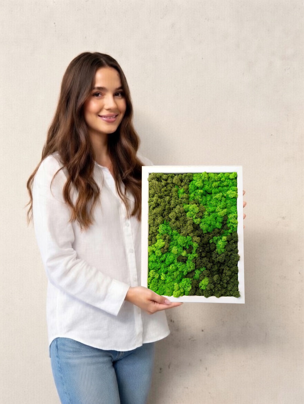 Handmade from 100% natural preserved moss, designed to last up to 10 years without fading. Perfect for living rooms, offices, or as a unique gift.
